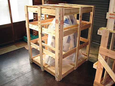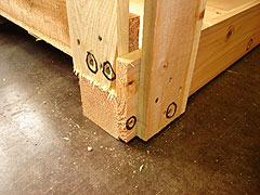 中央部の脚の付け根と両肩のところで押さえ処理をします。横板も角材が通る位置に合わせて設計してあります。