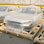 ストレッチフィルムを透明タイプから黒色タイプ(写真参照)に変えることにより、中身の見えては困る製品にも対応しております。木製パレット以外を使えば、中国・EU諸国・オセアニア等向け輸出でも薫蒸(くんじょう)検疫が不要となり、より迅速な発送が実現できます。